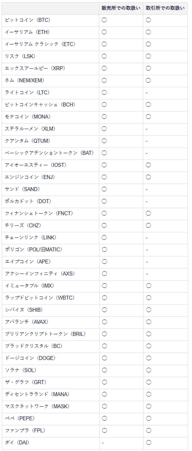 販売所または取引所を利用する際は、事前に取引したい銘柄があるかどうか確認しておくと良いですよ!