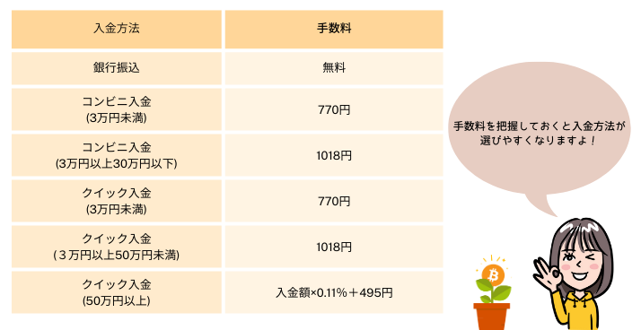 コインチェックへの入金手数料はこちら。